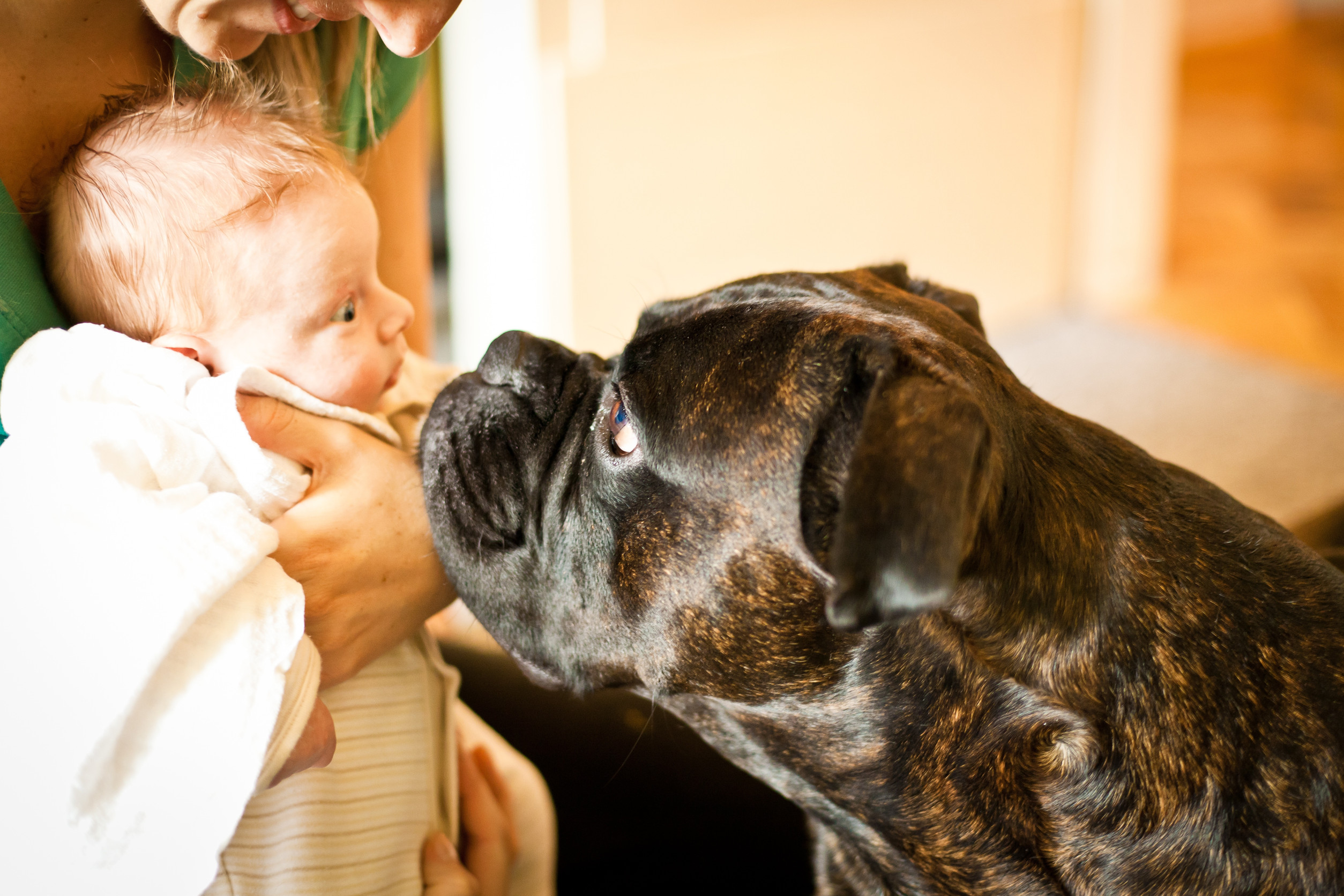 Après la naissance, présenter un vêtement portant l’odeur du bébé aide aussi à familiariser l’animal.